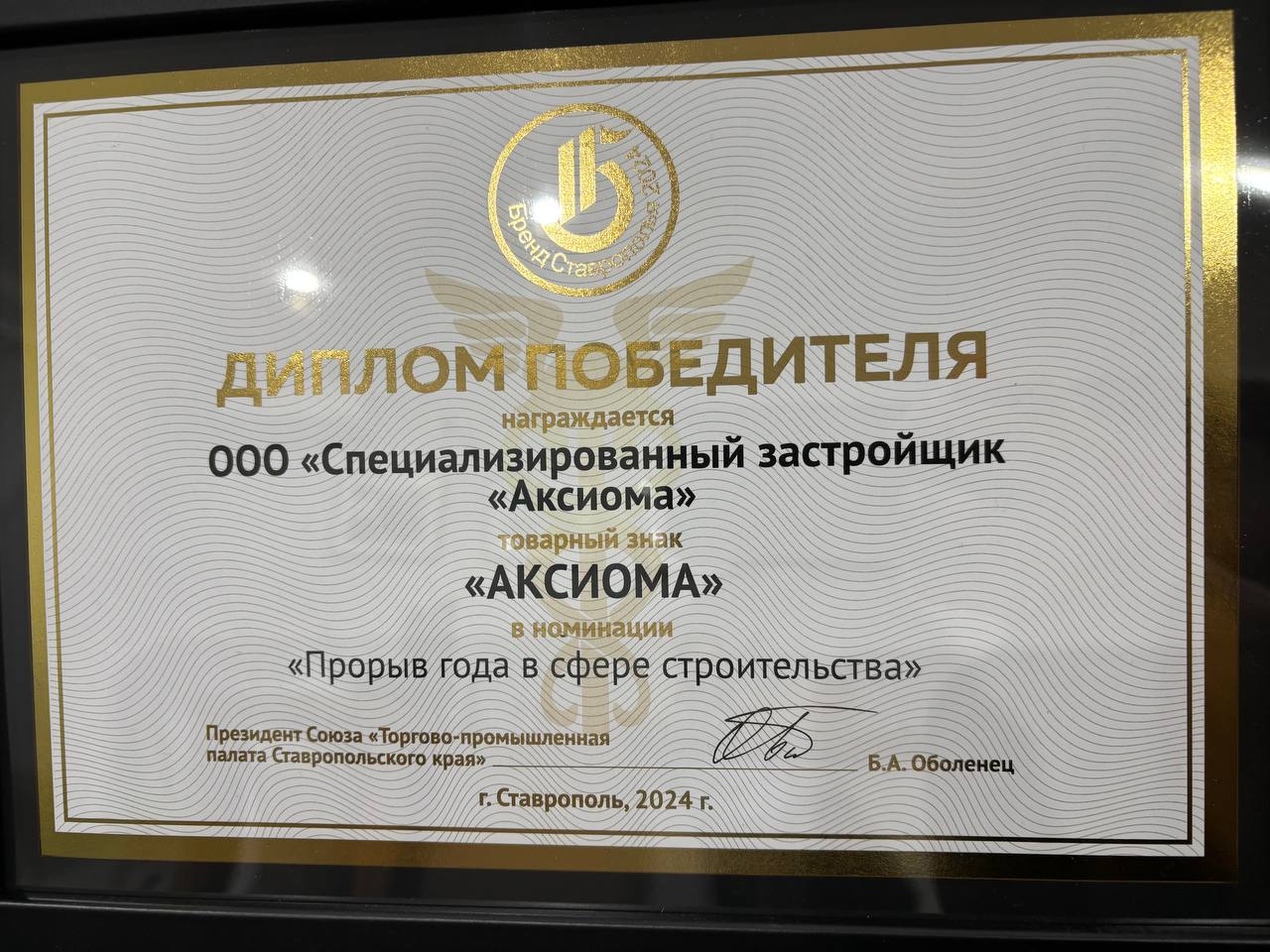В этом году наша компания « Специализированный застройщик Аксиома» с гордостью объявляет о своем триумфе на престижной премии «Бренд Ставрополья 2024», где мы стали победителями в номинации «Прорыв в области строительства». Эта награда стала для нас не только подтверждением нашего профессионализма, но и ярким свидетельством того, что наши усилия по внедрению инновационных технологий и высоких стандартов качества в строительстве были оценены по достоинству.